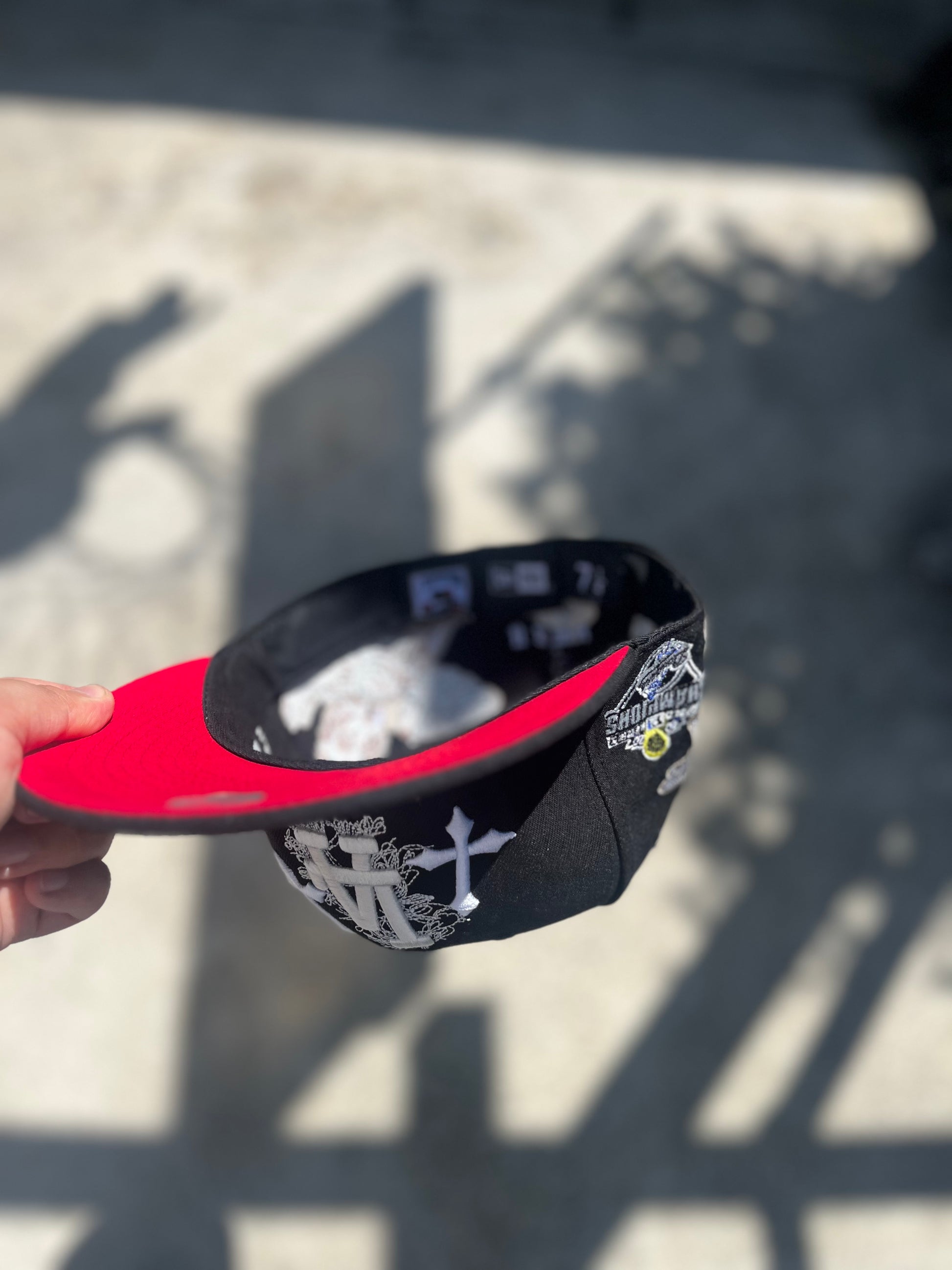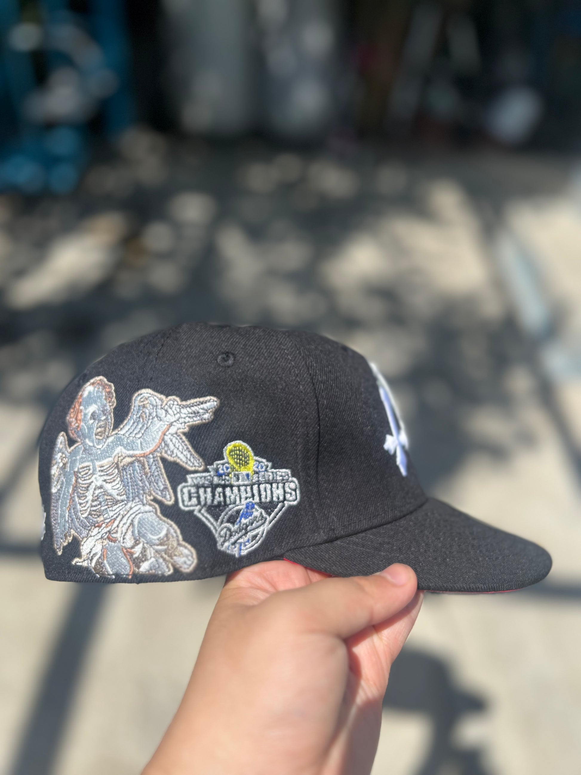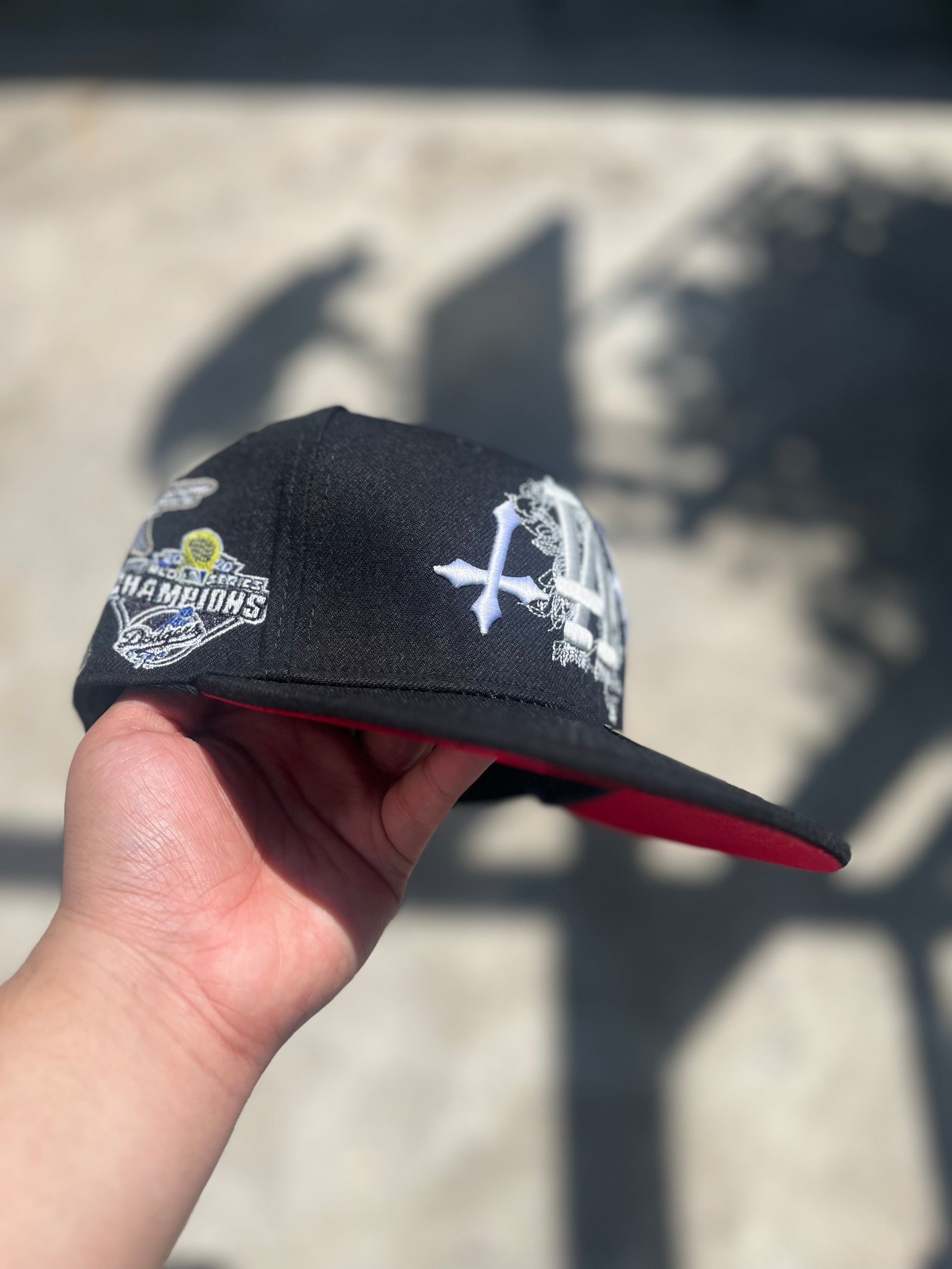 NEW ERA EXCLUSIVE 59FIFTY BLACK/ RED BRIM LOS ANGELES DODGERS W/ 2020 CHAMPIONS SIDE PATCH